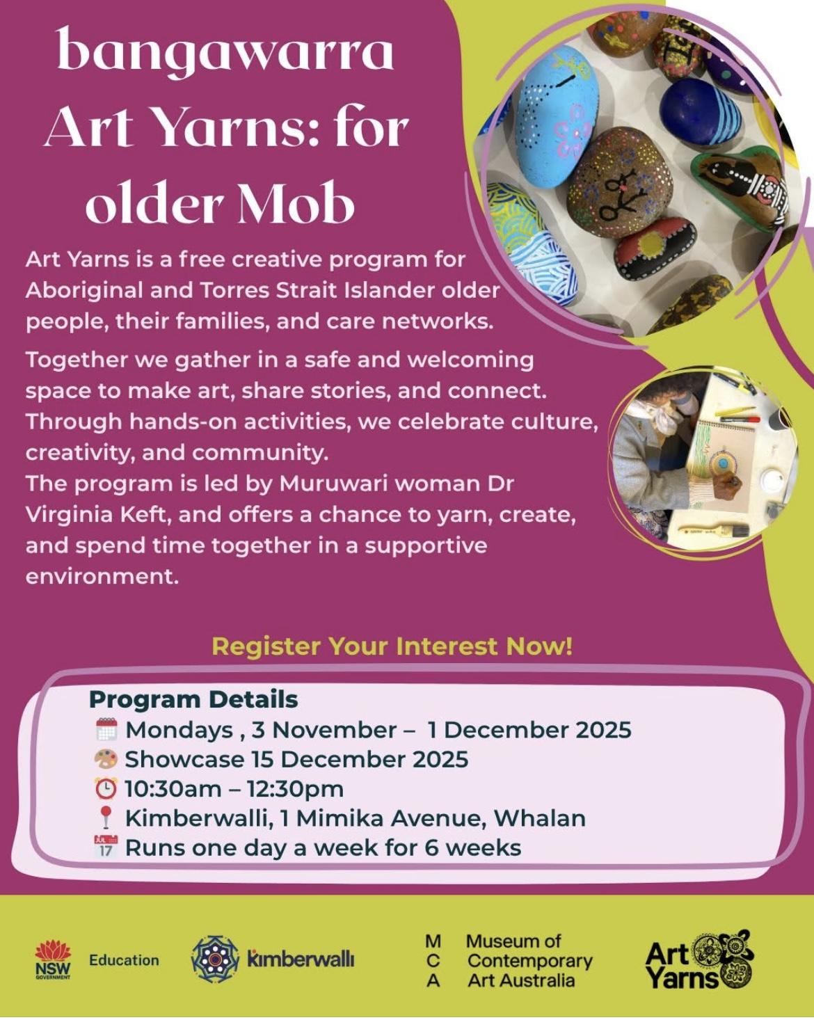 Bangawarra Art Yarns Community Notices Comments : 0 Aboriginal,community,Hawkesbury,Torres Strait Islanders,Yarns 27/10/2025 Share : Prev Post Next Post